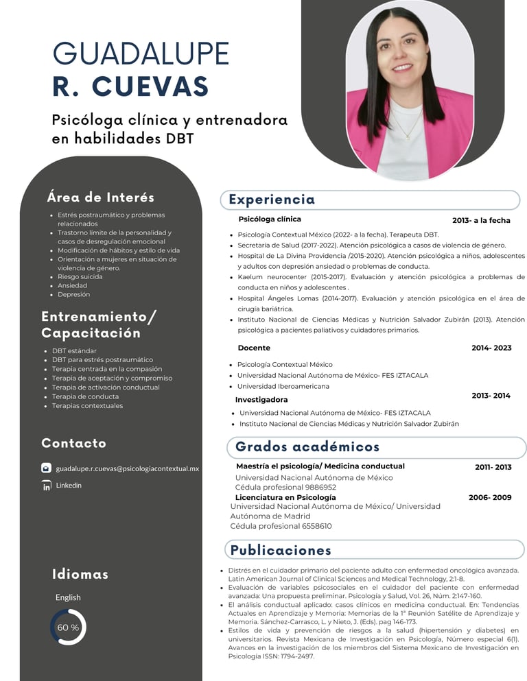 En Psicología Contextual México contamos con un equipo multidisciplinario de profesionales de la salud mental comprometidos con la práctica clínica basada en evidencia científica y el desarrollo continuo de habilidades terapéuticas.